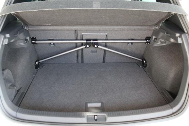 Fahrwerk und Chassis: Komplettes, einstellbares Eibach-Gewindefahrwerk. Einstellbarer Sturz über Uniball-Domlager. Verstärkte Stabilisatoren. Powerflex-Fahrwerksbuchsen. Carbon-X-Strebe im VW Racing-Kofferraum. Leichte 19-Zoll-Fondmetal Evo 9-Felgen in Schwarz glänzend. Michelin Cup 2 Semi-Slick-Reifen.